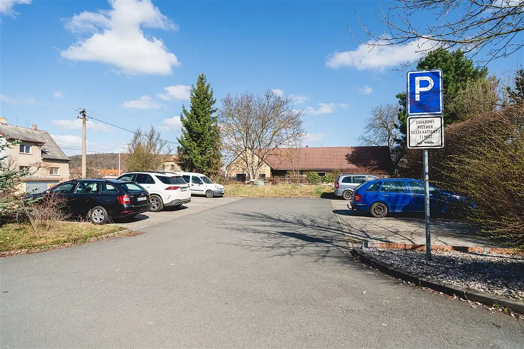 K bytu náleží prostorná sklepní kóje o velikosti 3,9 m², která přímo sousedí s bytem a je vybavena elektřinou. Součástí prodeje je též podíl na soukromém parkovišti u domu, který odpovídá jednomu parkovacímu stání, s možností využití dalších veřejných parkovacích míst v okolí. Výhodou je také možnost dlouhodobého pronájmu garáže přímo naproti domu.