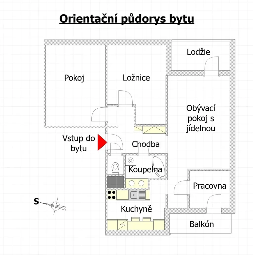 Byt je prostorný, s citem upravený, orientován na východ a na západ. Vyznačuje se vkusem a promyšlenou dispozicí. Centrální chodba a z ní vstup jak do dětského pokoje, tak do ložnice i obývacího pokoje. Obývací pokoj, který je situován na východ má k dispozici lodžii, která poskytuje příjemný prostor pro relaxaci. Z pracovny přístup na balkon, situovaný na západní stranu. V celém bytě jsou předokenní žaluzie na el. ovládání.