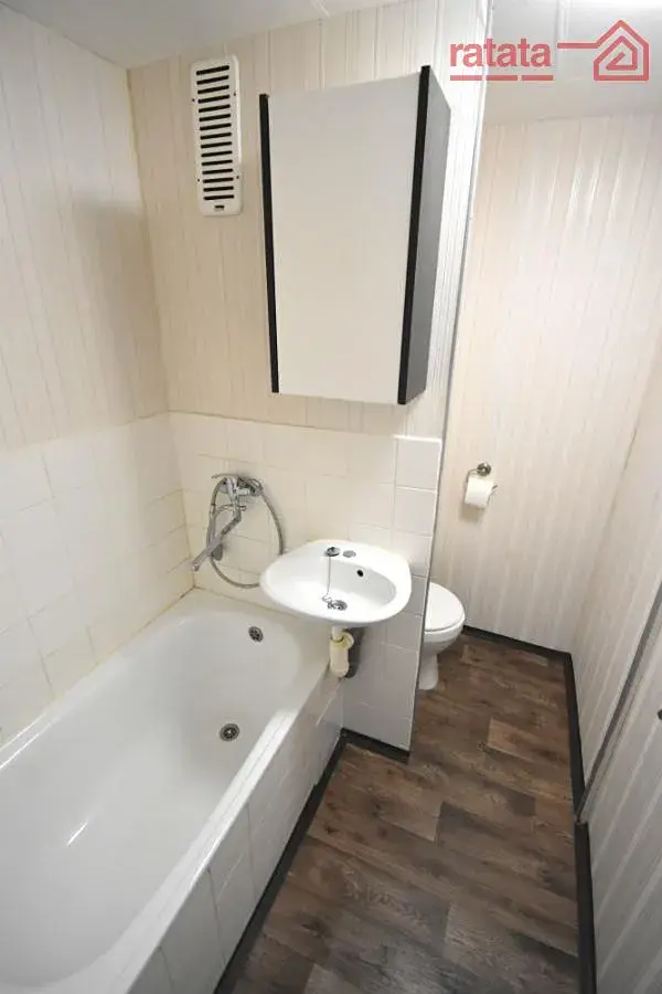 Byt je čistý, slunný a po rekonstrukci. Je zde rohová kuchyňská linka, na podlahách je položený koberec a linoleum. Byt je volný k nastěhování od 1.5.2026.