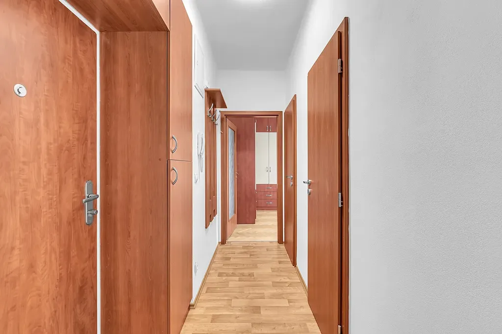Prostorná vstupní chodba se zabudovanými šatními skříněmi