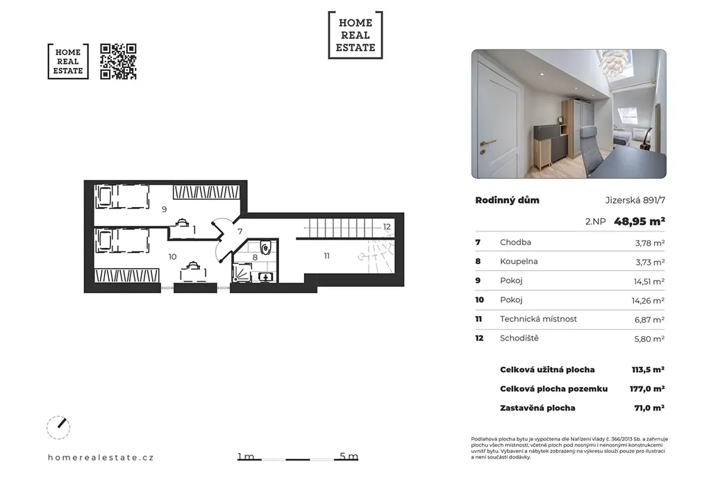 V patře (2. NP) se nachází klidová zóna domu. Dispozici tvoří dva samostatné pokoje, centrální chodba, koupelna a praktická technická místnost. Podlaží poskytuje dostatek soukromí pro rodinné bydlení i možnost pracovního zázemí.