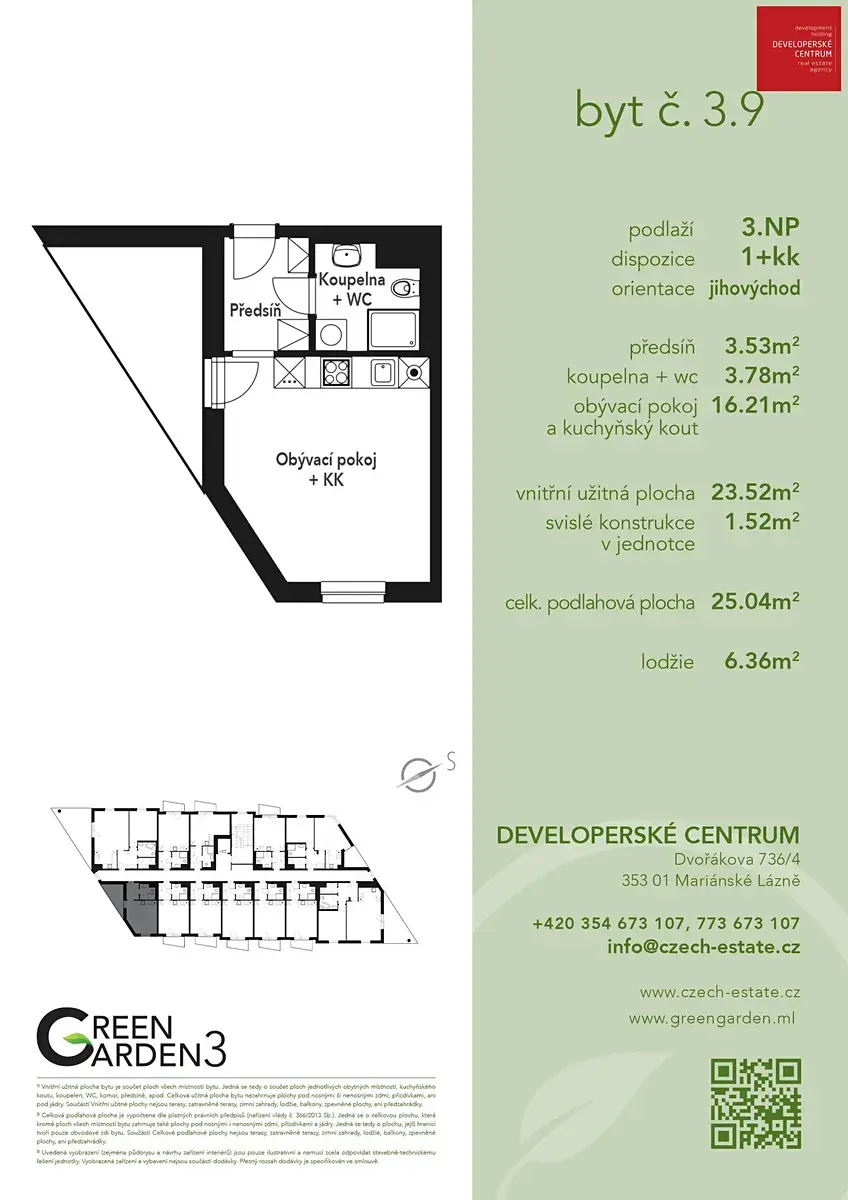 Nabízíme Vám možnost koupě bytů ve 3.etapě úspěšného projektu Green Garden v Mariánských Lázních. Projekt Green Garden 3 je vyprojektován jako maximálně úsporný objekt, a to z hlediska zateplení (PENB, třída B), tak i systému vytápění, který bude tvořen energetickým mixem díky plynovým kotlům a tepelným čerpadlům. V nabídce jsou byty dispozice 1+kk, 2+kk a 3+kk, a nově i přízemní byty s prostornými předzahrádkami. Po dohodě lze pro budoucí majitelé připravit byty dle vlastní dispozice a požadavků. Dále si budoucí majitelé mohou zakoupit sklepní kóji nebo parkovací stání v areálu. Projekt Green Garden 3 se nachází ve velmi klidné lokalitě centra města na hranici lesa a blízko nákupně-administrativní zóny Nová Chebská. Dle obvyklého standardu developera jsou byty vybaveny kvalitními zařizovacími předměty (podlahy, dveře, koupelny), celý budoucí areál bude oplocen, hlídán kamerovým systémem a součástí areálu bude samozřejmě i dětské hřiště, vše v těsném sousedstvím s parkem a lesem. Kolaudace je naplánovaná nejpozději do konce 1. kvartálu 2027. Kompletní nabídka volných bytů včetně ceníku a podrobných informací je k dispozici na naších webových stránkách.