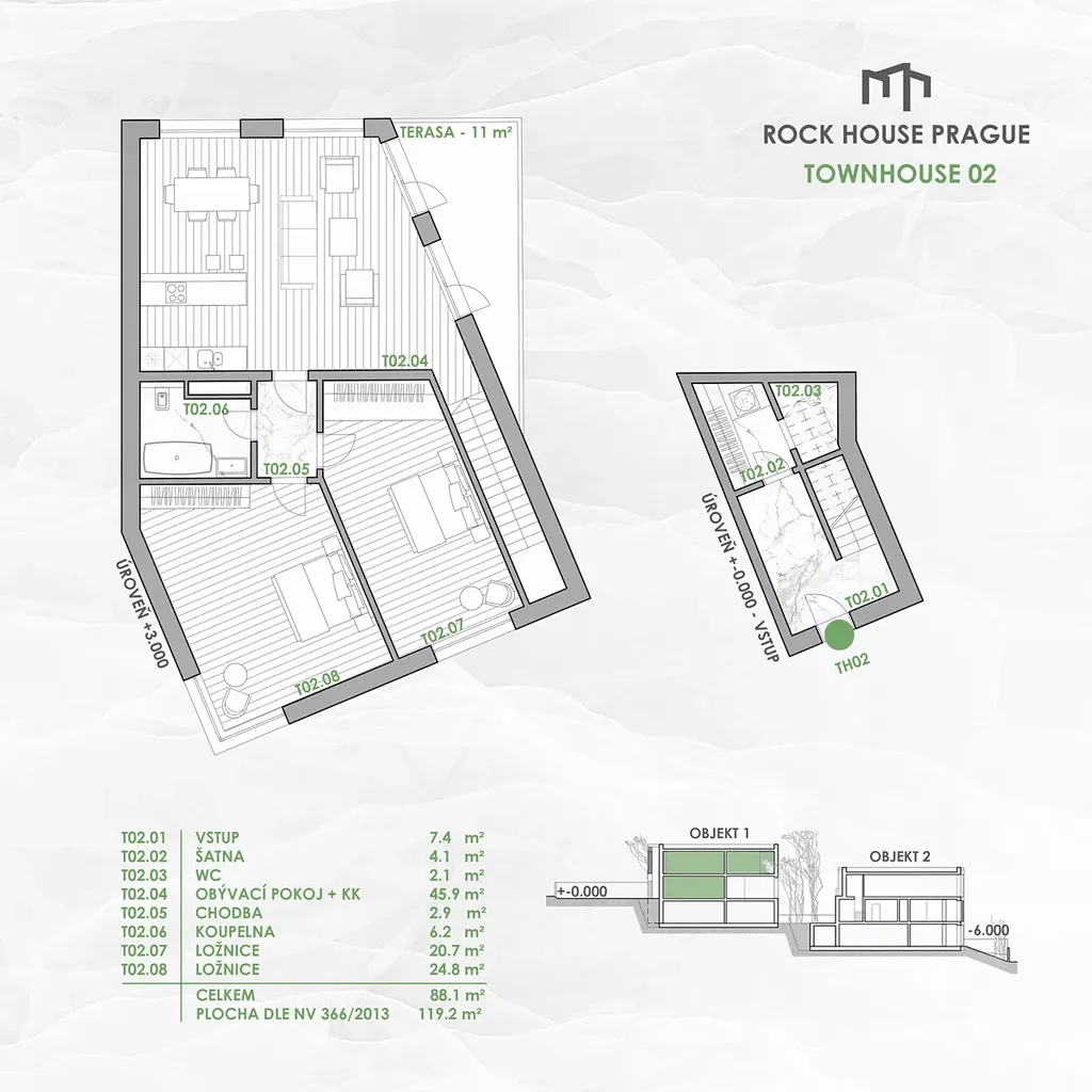 K prodeji nabízím mezonetovou bytovou jednotku typu townhouse se samostatným vstupem, umístěnou v nově vznikajících viladomech projektu Rock House Prague.