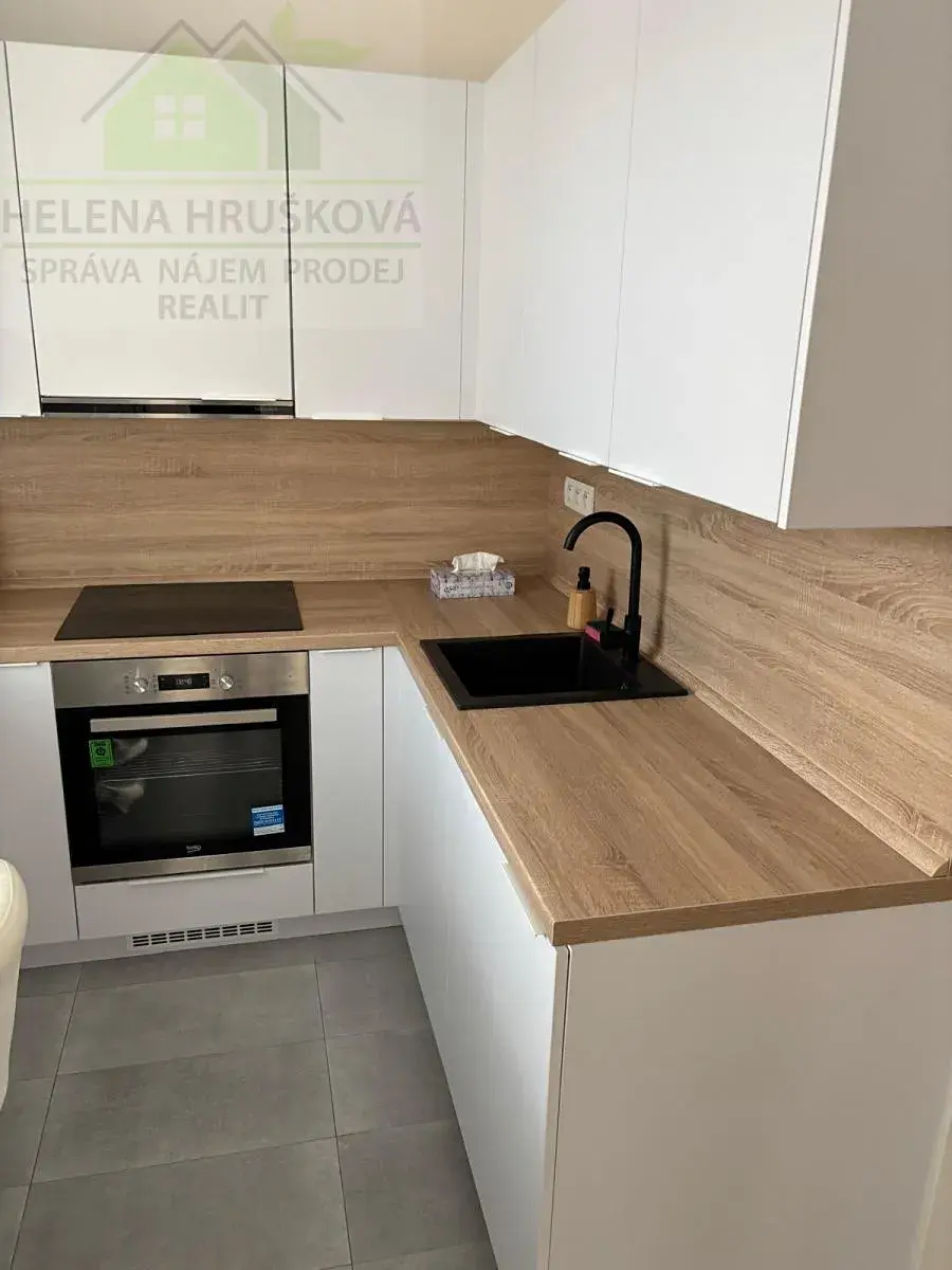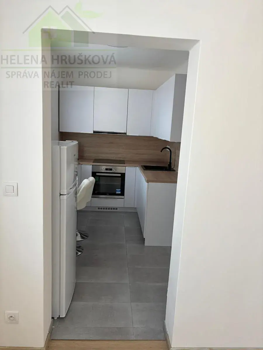 Byt tvoří předsíň s úložnými prostory, obývací pokoj, kuchyň s kuchyňskou linkou, vybavená elektrickou varnou deskou, troubou, digestoří, myčkou. Koupelna se sprchovým koutem, WC.
