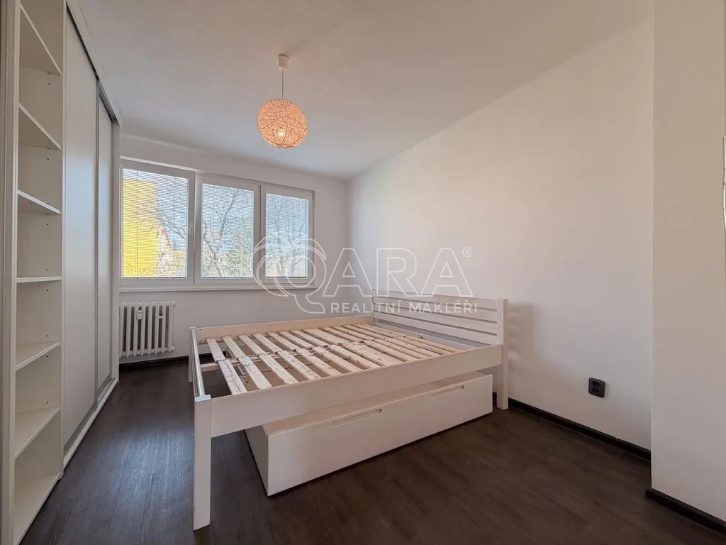 Interiér působí velmi čistě díky kombinaci světlých stěn a moderních podlah v dekoru dřeva. Obývací pokoj je vzdušný a nabízí dostatek prostoru pro obývací část i jídelní kout. Ložnice je vybavena postelí a vestavěnou skříní, další pokoj lze využít jako dětský pokoj či pracovnu, který má 2. vstup na balkon.