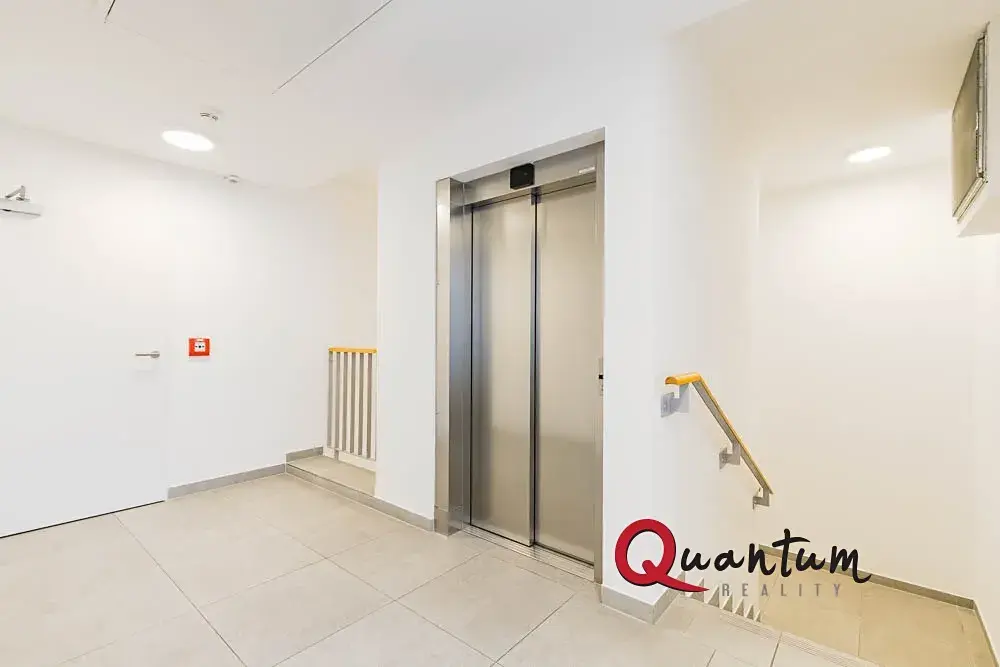 Byt se nachází ve 4., posledním podlaží (výtah) moderní budovy rezidenčního projektu Sky Barrandov.