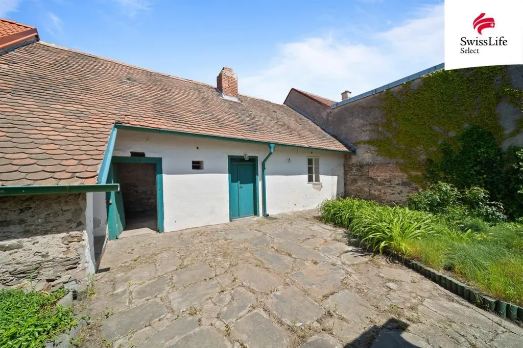 Na zahradě za domem je původní sklad ze kterého můžete vytvořit krásnou pergolu a ani Vás to nebude moc stát. Pro uskladnění potravin je k dispozici 9 m2 sklep pod nemovitostí nebo pro Vaší soukromou vinárnu. V chodníku před vchodem je přípojné místo ke kanalizaci.