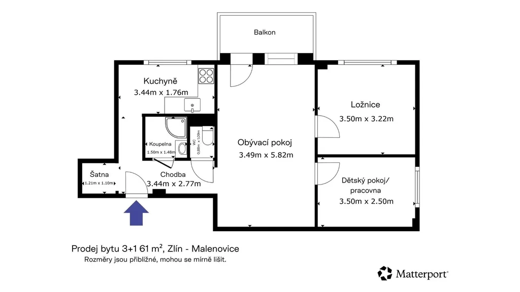 ID 02712 Ing. Jana Urbanová & Explicit Reality Vám nabízí k prodeji kompletně zrekonstruovaný byt 3+1 s balkonem | JV orientace | Malenovice u Zlína | 15 minut do centra Zlína | 5 minut na dálnici