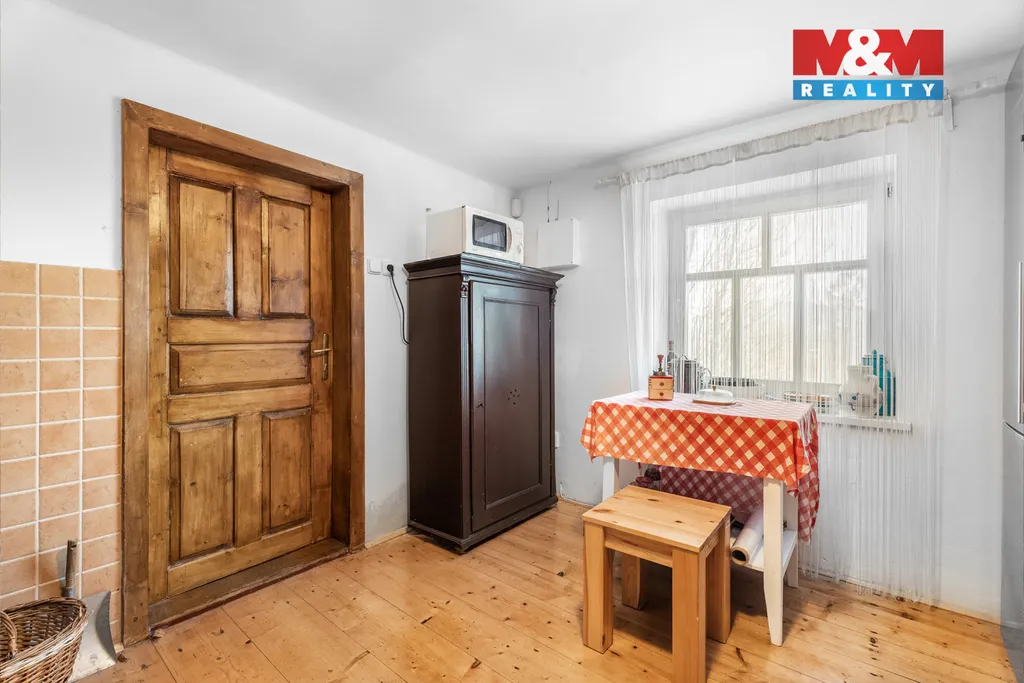 Chalupa prošla rekonstrukcí a je připravena k okamžitému užívání. Masivní nábytek zůstává a přirozeně dotváří atmosféru, která sem patří.