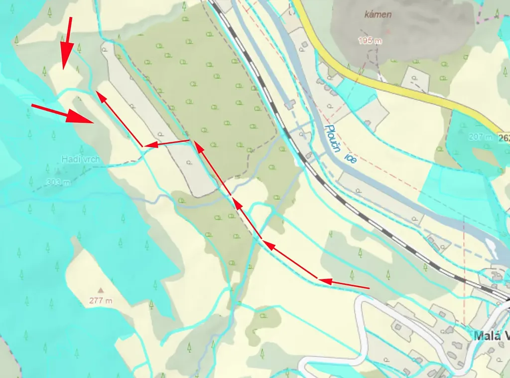 Prodáme pozemek, louku s porostem stromů v k.ú. Malá Veleň, parc.č. 607/4. Přímo přístupný po obecních cestách (viz poslední obrázek).