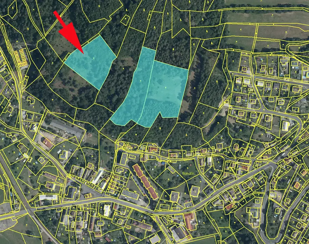 Prodáme pozemek, mírně svažitou louku (jižní svah) s porostem stromů (možno vykácet) v k.ú. Bohutín nad Moravou, parc.č. 221/2.