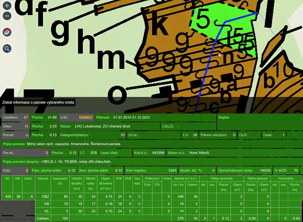 Prodej lesa, Horní Němčí, 4589 m2 (ID: 2024092)