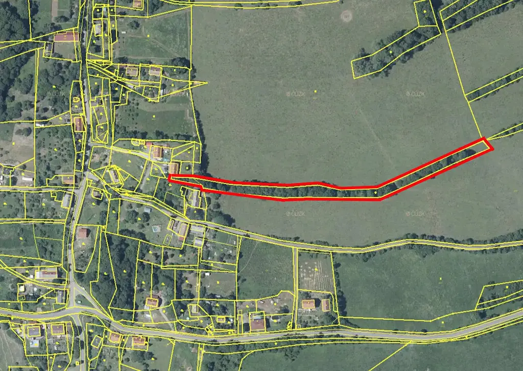Lesní porost na nelesním pozemku, neplatí přísné předpisy pro les, možno částečně těžit