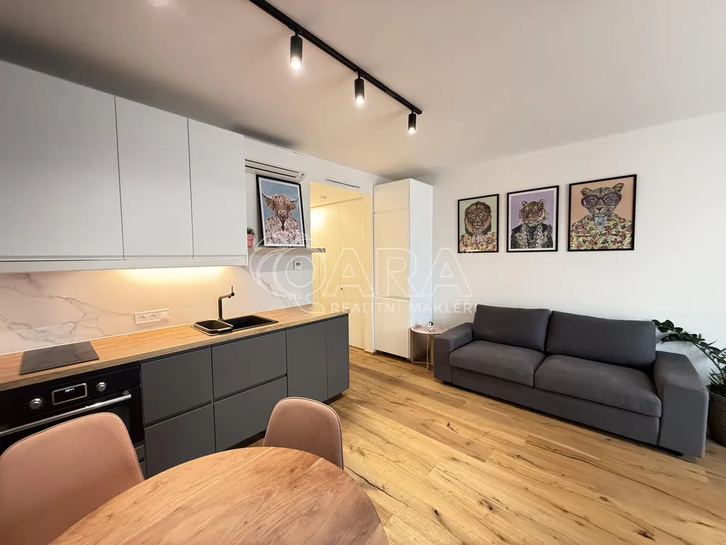 Byt je navržen s důrazem na komfort a praktičnost. Dominantou je světlý obytný prostor s moderní kuchyňskou linkou vybavenou spotřebiči včetně myčky nádobí varné desky a horkovzdušné trouby. Koupelna je v moderním provedení se sprchovým koutem a podsvíceným zrcadlem. K dispozici je také pračka. Byt dále disponuje klimatizací a podlahovým topením, které zajišťují maximální pohodlí po celý rok.