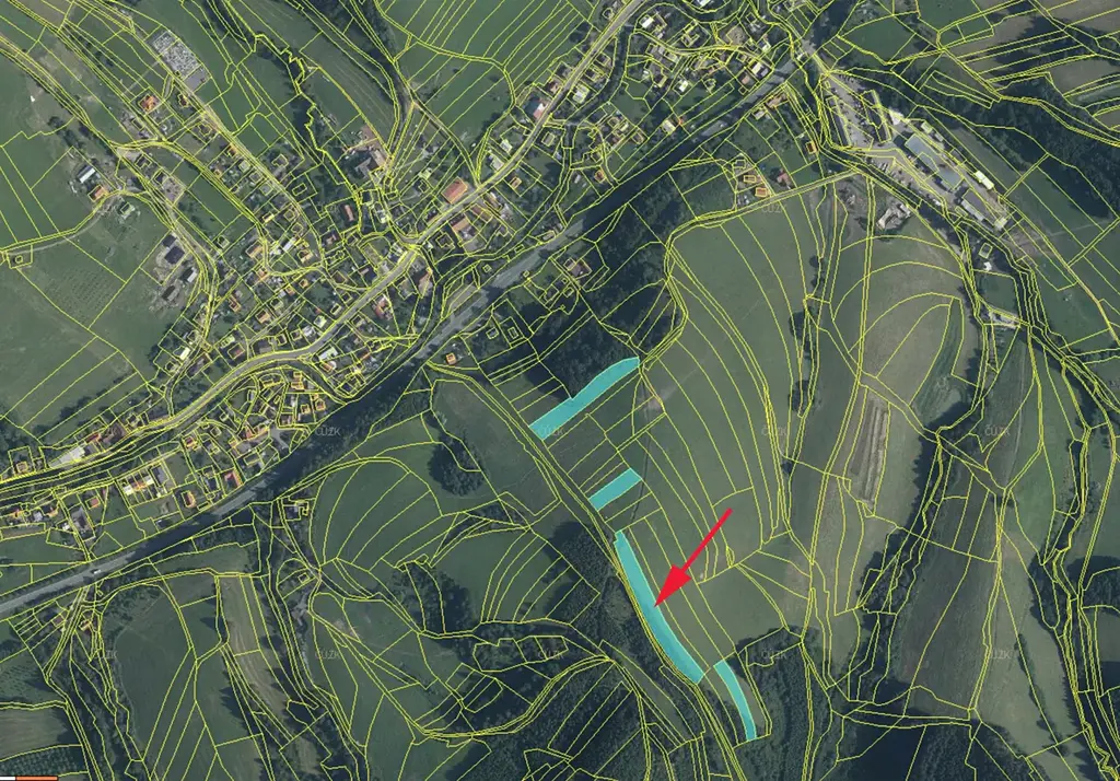 Prodáme pole (orná půda) s částečným porostem stromů (možno vytěžit) v k.ú. Lhota u Vsetína, parc. č. 315