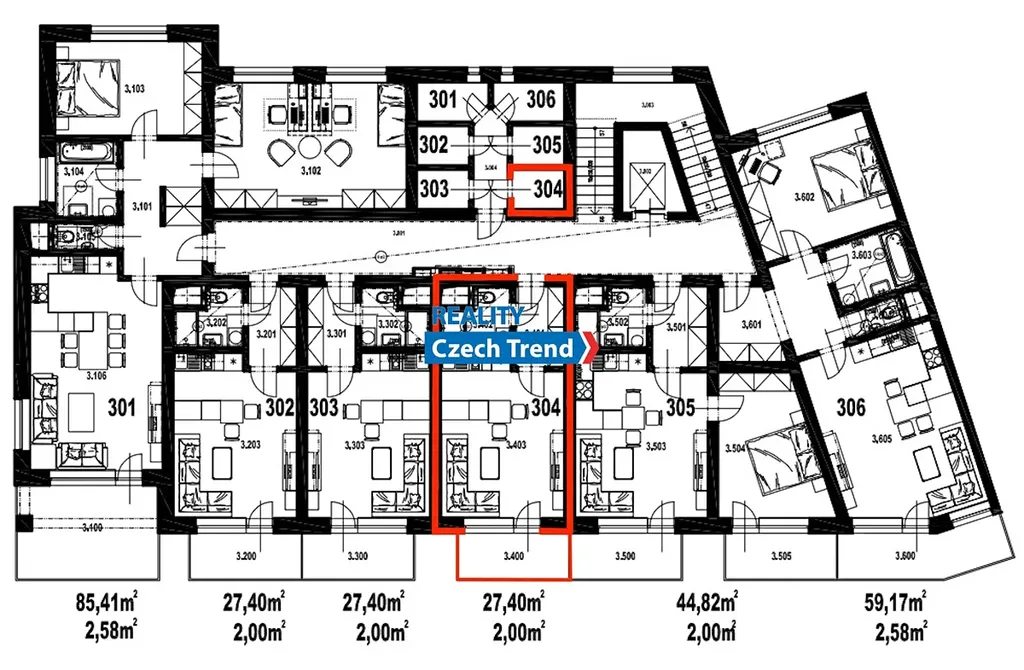 Velkou výhodou je praktická komora přímo na patře naproti bytu – perfektní pro uložení všeho, co nechcete mít doma na očích.
