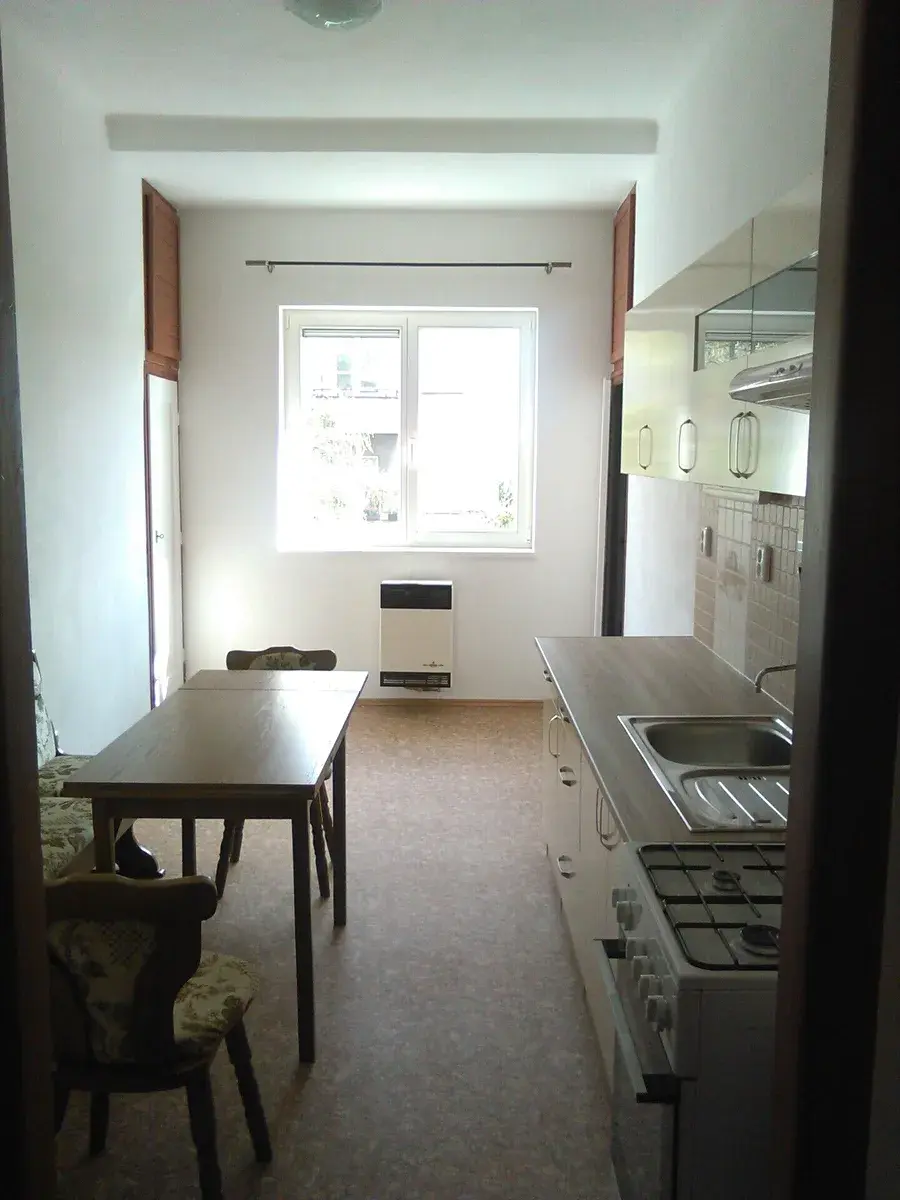 Popis: kuchyně 12 m2, pokoj 19 m2, předsíň 3,88 m2, koupelna 3,13 m2, WC 0,9 m2, spíž 0,3 m2. K bytu patří zrekonstruovaný suchý sklep 2 m2.