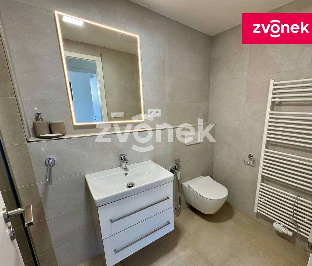 Nabízím Vám nově dokončený byt 2+kk s terasou a garážovým stáním v krásném prostředí nedaleko centra Zlína - Tyršovo nábřeží. Celková plocha bytu je 50 m² plus terasa 4m² a velký sklep na patře bytu (4m2). Dále je možné si pronajmout parkovací stání v suterénu domu za částku 2.000,-Kč/měsíčně. Byt se skládá ze vstupní chodby s vestavěnou skříní s botníkem a odkládacím prostorem, obývacího pokoje s kuchyňským koutem, ložnicí s vestavěnou skříní, koupelny se sprch. koutem a toaletou a komory s prostorem na pračku a sušičku. Byt bude částečně vybaven - kuchyňská linka se spotřebiči, sedací souprava v obývacím pokoji a manželská postel v ložnici. Měsíční nájemné činí 18.000 Kč, k tomu zálohy na energie ve výši 3.000 Kč (voda, topení). Elektřinu si nový nájemce převede na své jméno a platí zvlášť. Kauce ve výši 30 000 Kč se platí při podpisu nájemní smlouvy, stejně jako provize ve výši nájmu + DPH. Byt je vhodný nejvýše pro dvě osoby, nekuřáky, bez domácích mazlíčků.