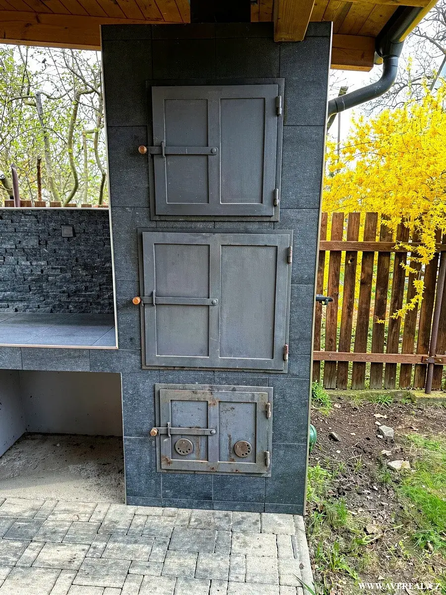 Na pozemku se nachází zastřešený bazén o ploše přibližně 18 m² a hloubce 1,5 m, vybavený pískovou filtrací a je dohřívaný solárními panely ze střechy RD. Součástí zahrady je také prostorná pergola s letní kuchyní, přívodem vody a elektřiny, lednicí a krbem s udírnou. Dále je zde zděný sklad o velikosti cca 16 m² a pečlivě udržovaná zahrada s okrasnými i ovocnými stromy.