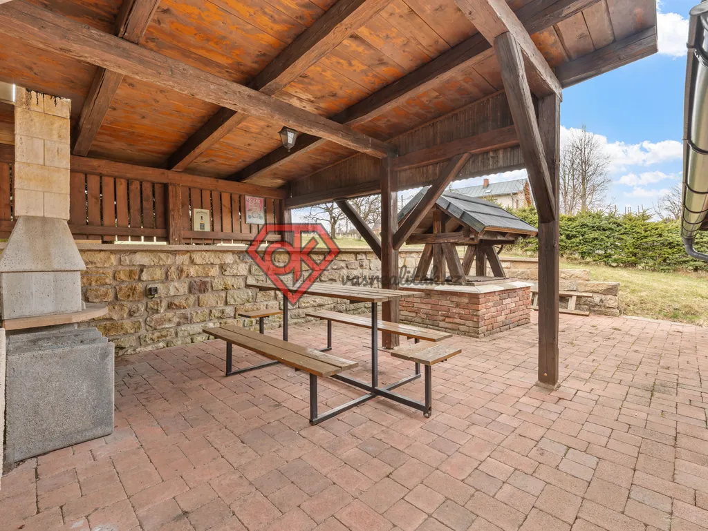 - zastřešená terasa s venkovním krbem