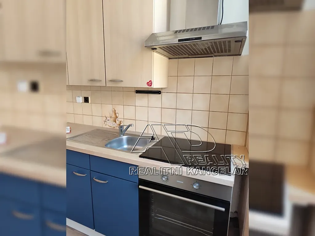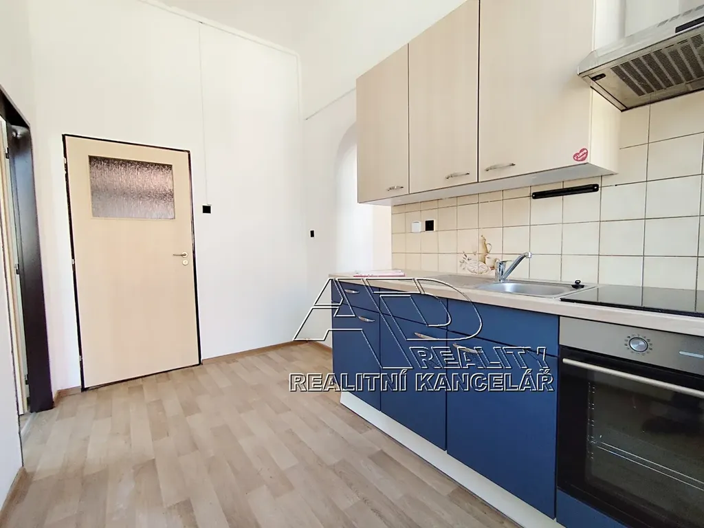 Byt je k dispozici včetně základního vybavení – kuchyňská linka, elektrická varná deska, vestavěná trouba, digestoř.