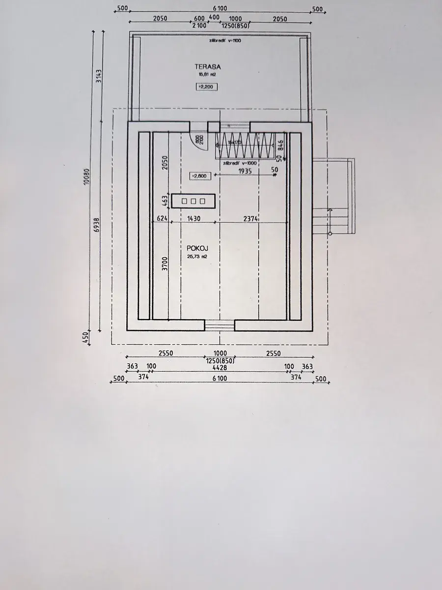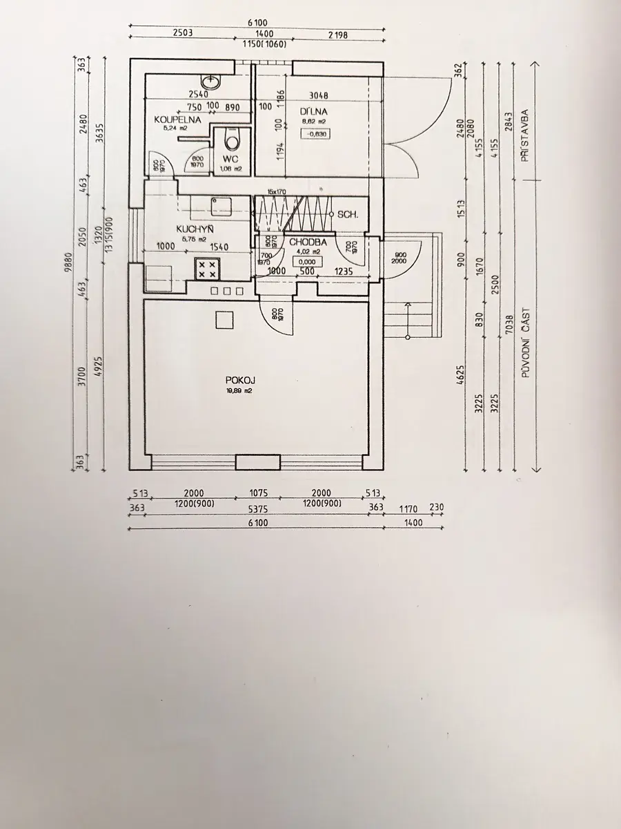 - zastavěná plocha zděné cihlové chaty 64 m2, užitná plocha 62 m2 + balkon 16 m2 a dílna 9 m2