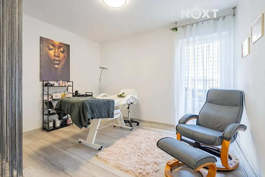 Dlouhá chodba na opačné straně domu zajišťuje samostatné vstupy do technické místnosti s místem pro pračku a sušičku, samostatného WC, tří dalších ložnic a prostorné koupelny s velkou vanou a druhým WC. Jeden z pokojů je aktuálně využíván jako kosmetické studio a má samostatný vchod, což otevírá možnost pro podnikání přímo z domu.