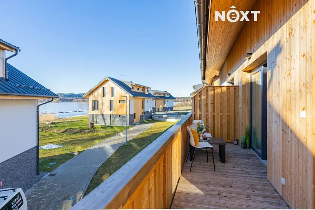 Hledáte klid a pohodu na břehu Lipenské přehrady? Nabízíme Vám prodej apartmánu 3kk v Černé v Pošumaví. Obec se nachází v okrese Český Krumlov, zhruba 18 km jihozápadně od Českého Krumlova. Dobrá dojezdová vzdálenost je i do Českých Budějovic. Do obce se dostanete autem, ale i vlakem. Především Vás okouzlí okolní příroda a možnost celoročního sportovního vyžití. Lokalita nabízí velmi dobrou občanskou vybavenost(restaurace, prodejna potravin, pošta, skiareály, cyklostezky, pláže, půjčovny sportovních předmětů, apod.). Apartmán se nachází ve zděné třípodlažní budově v prvním patře. K zachování komfortu zde naleznete i výtah. Celková plocha apartmánu je 53m2. Dispozice apartmánu: předsíň, koupelna s WC, pokoj, obývací pokoj s kuchyňským koutem, ložnice a prostorná terasa s výhledem na Lipenskou přehradu. Apartmán je plně vybaven a v současné době pronajímán. Správcovská firma Vám zajistí pronájem apartmánu a veškerý chod s tím spojený. Součástí prodeje i jedno parkovací stání hned před domem. Dále zde má každá bytová jednotka sklepní kóji k uložení sezonních věcí. Díky atraktivní lokalitě Vám doporučujeme byt (apartmán), jako výhodnou investiční příležitost, kde využijete letní i zimní sezónu. Budeme se na Vás srdečně těšit při osobním setkání, kde Vám rádi sdělíme podrobné informace k bytové jednotce. Nemovitosti lze financovat prostřednictvím hypotečního úvěru. Nezávazně Vám připravíme nabídku možného financování. Pouze u nás vám zajistíme moderní financování až na 30 let, bez ohledu na věk a prokazování příjmů, či nutnosti předkládat daňové přiznání (u podnikatelů). Pro komunikaci uvádějte evidenční číslo zakázky N103141.