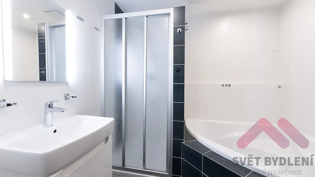 Byt se nachází v 2.NP novostavby s orientací do volného prostoru a na zeleň. K dispozici jsou po vstupu do bytu dvě samostatné ložnice, samostatná šatna a toaleta. Z chodby je taktéž přístupná prostorná koupelna kde naleznete jak rohovou vanu tak i sprchový kout spolu s pračkou. Prostorný obývák je spojen s kuchyňským koutem, zařízeným novými spotřebiči, jako : horkovzdušná trouba, mikrovlnka, sklokeramická deska, americká - dvoukřídlá lednice s výrobnou ledu a myčka. Neopomenutelnou výhodou tohoto bytu je i samostatná garáž v suterénu domu se zamykatelnými vraty. Cena bytu včetně garáže je 29.500,-Kč + služby 5.000Kč + elektřina se převádí na nájemníka. Volné ihned!