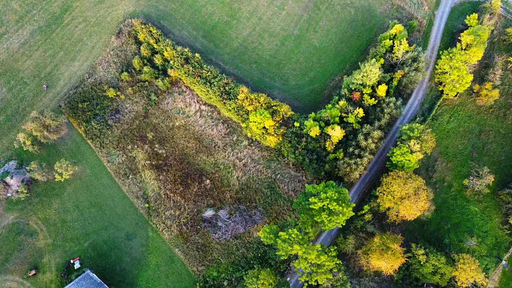 Pozemek je přístupný po zpevněné obecní cestě a – kdyby vás to napadlo – dá se dokonce rozumně rozdělit na dvě části. Prostě možností je tu víc než dost.