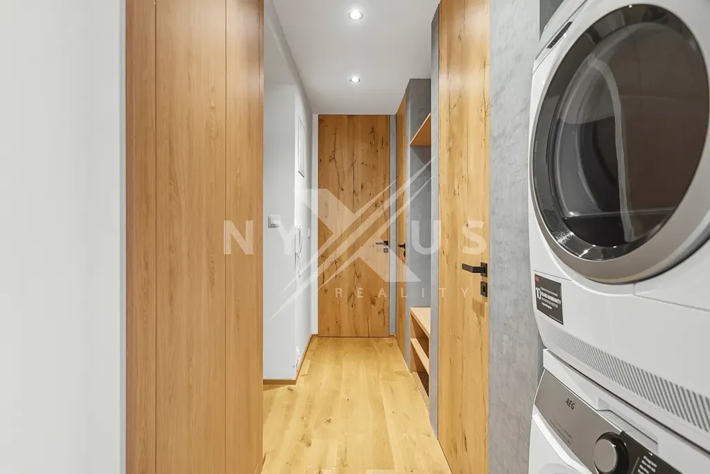 Příjemný dojem podporují i materiály a technické řešení bytu. V obytných místnostech najdete dřevěnou podlahu, kuchyň je vybavena linkou s vestavěnou myčkou, troubou a plynovým sporákem a koupelna se sprchovým koutem je doplněna o samostatné WC, které zvyšuje pohodlí každodenního provozu.