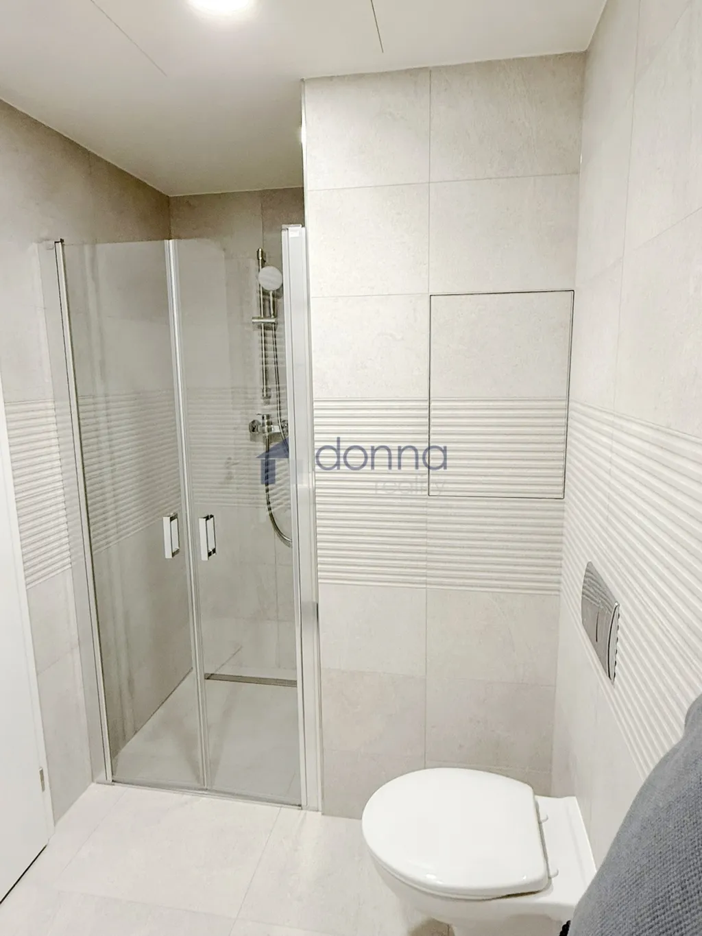 K dispozici kuchyňská linka, varná deska, pečící trouba, digestoř, myčka nádobí, potravinová skříň, šatní skříň. Dle dohody možno dokoupit lednici. V koupelně je sprchový kout a toaleta. Podlahy: vinyl a dlažba. V bytě je rekuperace.