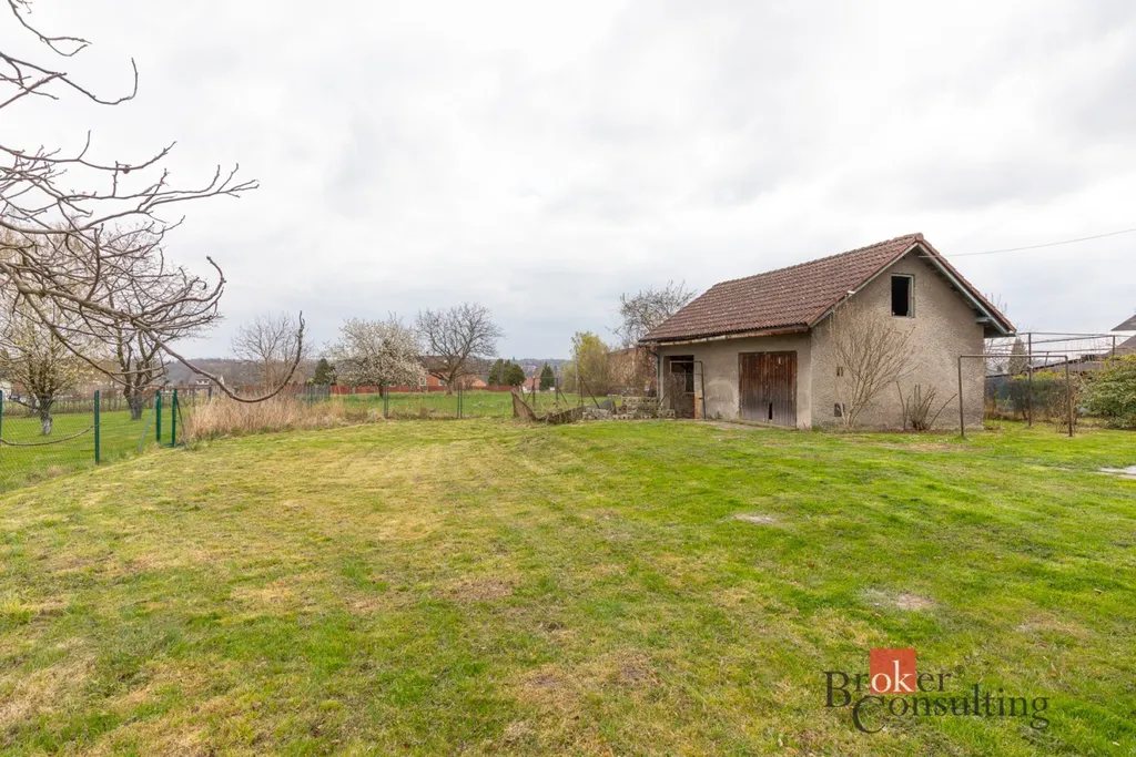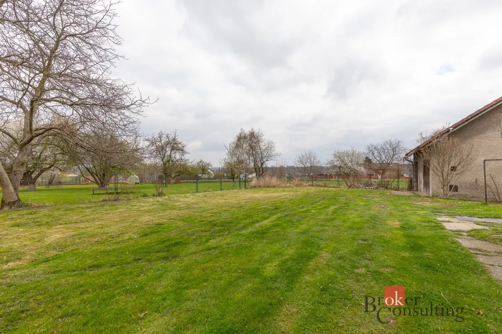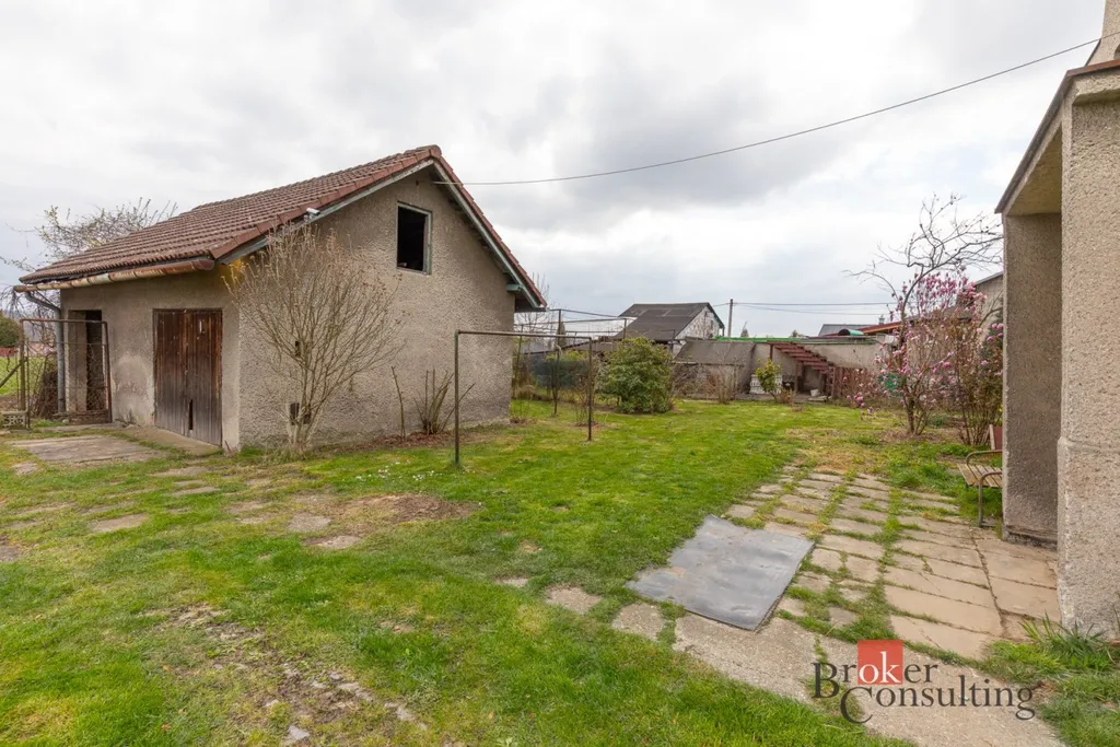 Dům stoji na pozemku s dostatkem prostoru pro zahradu či relaxační zónu. součástí pozemku je také zděná kůlna , kterou lze po úpravách přestavět na dvojí garáž či dílnu a garáž.