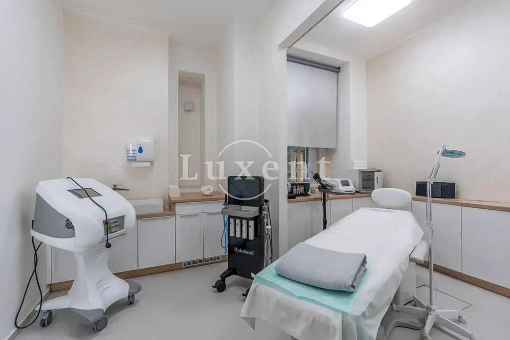 Samotný prostor se vyznačuje elegantním řešením dispozice, což vytváří klidnou a velmi profesionální atmosféru. Interiér ordinace i společné prostory budovy si zachovávají svůj historický ráz, avšak jsou plně přizpůsobeny nárokům moderního provozu. Dispozice a celkový standard vybavení činí tyto prostory obzvláště vhodnými pro obory specializované lékařské ambulance, psychoterapii či nadstandardní fyzioterapeutickou péči.