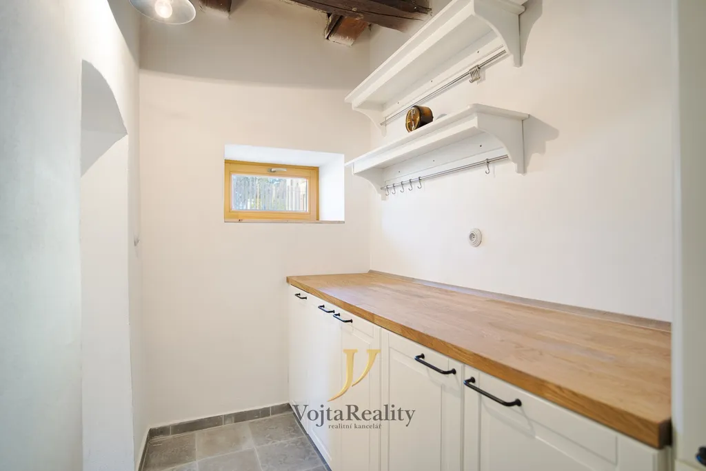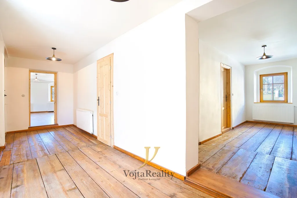 Součástí pozemku je také samostatná hospodářská budova o velikosti 108 m², která otevírá další investiční možnosti – vybudování apartmánů, stylového penzionu, ateliéru, wellness zázemí či kombinaci soukromého a podnikatelského využití. Zahrada s ovocnými stromy poskytuje soukromí, klid a příjemné prostředí pro relaxaci.