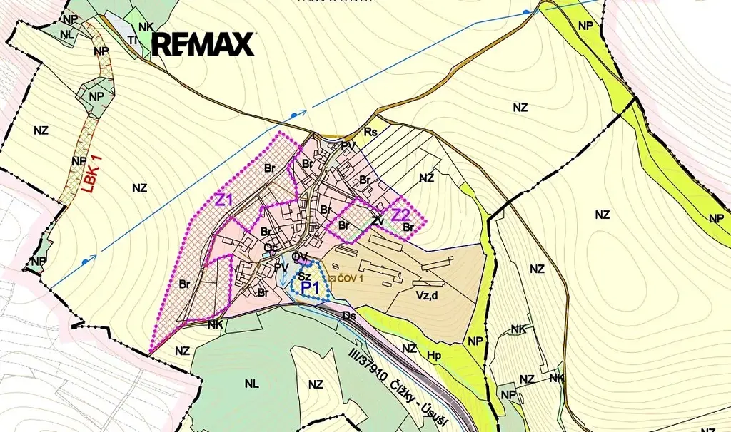 Územní plán: zastavitelná plocha - Br (označení lokalit Z1 )