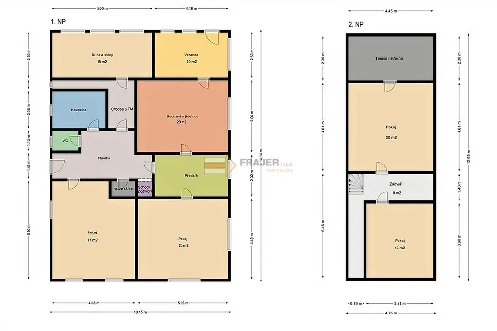 V půdní vestavbě se nachází dva pokoje, zádveří a přístup na terasu/střechu.
