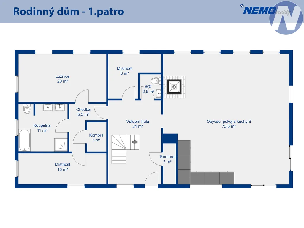 Dům nabízí celkovou plochu 440 m² včetně garáže, respektive 386 m² bez garáže, a je rozložen do tří podlaží. Od počátku vznikal pro vlastní potřebu, nikoliv jako běžný developerský projekt určený k rychlému prodeji. Je to znát na celkové koncepci, promyšlenosti, kvalitě použitých řešení i atmosféře, kterou celá nemovitost má. Dům je aktuálně těsně před dokončením, což novému majiteli zároveň dává možnost vtisknout finální podobě vlastní styl a dotvořit si interiér podle svých představ.