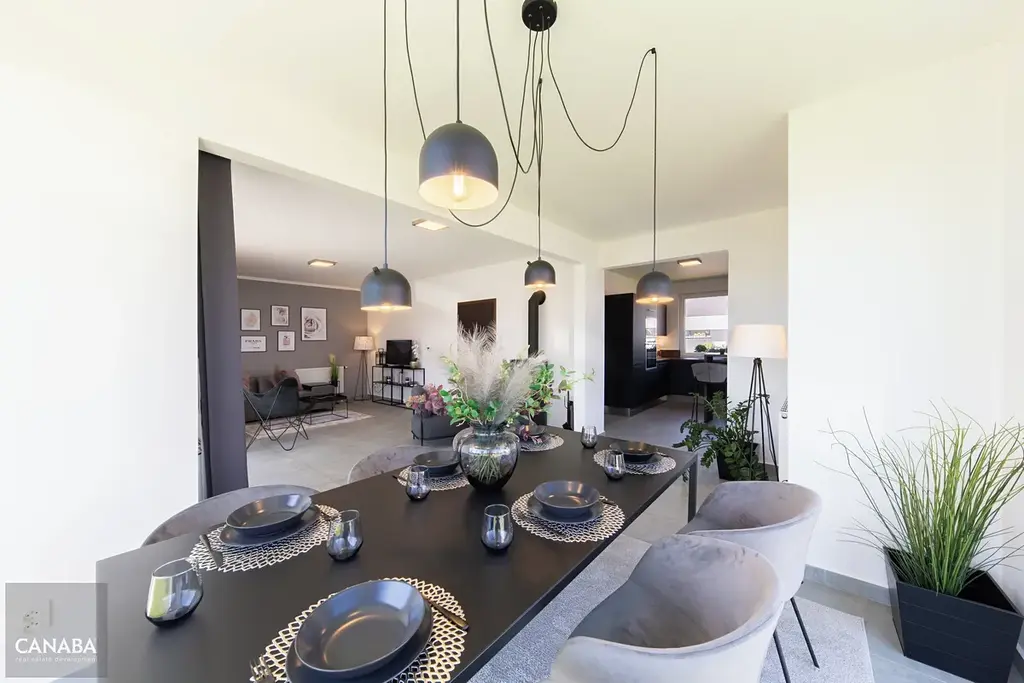 Rodinný dům Romance bude určen pro pohodlný život až 5 členné rodiny. Bohatý vnitřní prostor zahrnuje v přízemí obývací pokoj s prakticky odděleným kuchyňským koutem a v patře ložnici a 2 dětské pokoje. Součástí rodinného domu bude zádveří se šatnou, technická místnost, samostatné WC a samostatná koupelna.