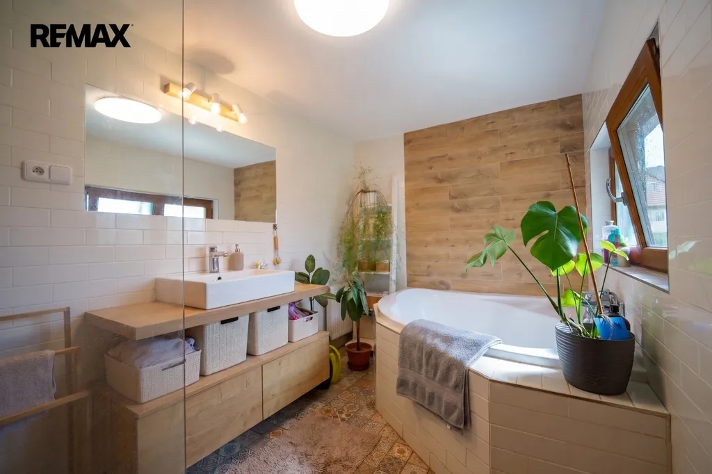 V podkroví je nově vybudovaná půdní vestavba: chodba, dva obytné pokoje a místnost připravená na dokončení druhé koupelny s toaletou. Je nutná výměna střešní krytiny.