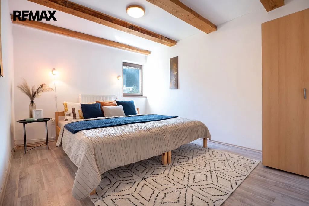 Objekt je v dobrém technickém stavu, plně obyvatelný, statika v pořádku, bez vlhkosti, původní krovy i trámoví zdravé.