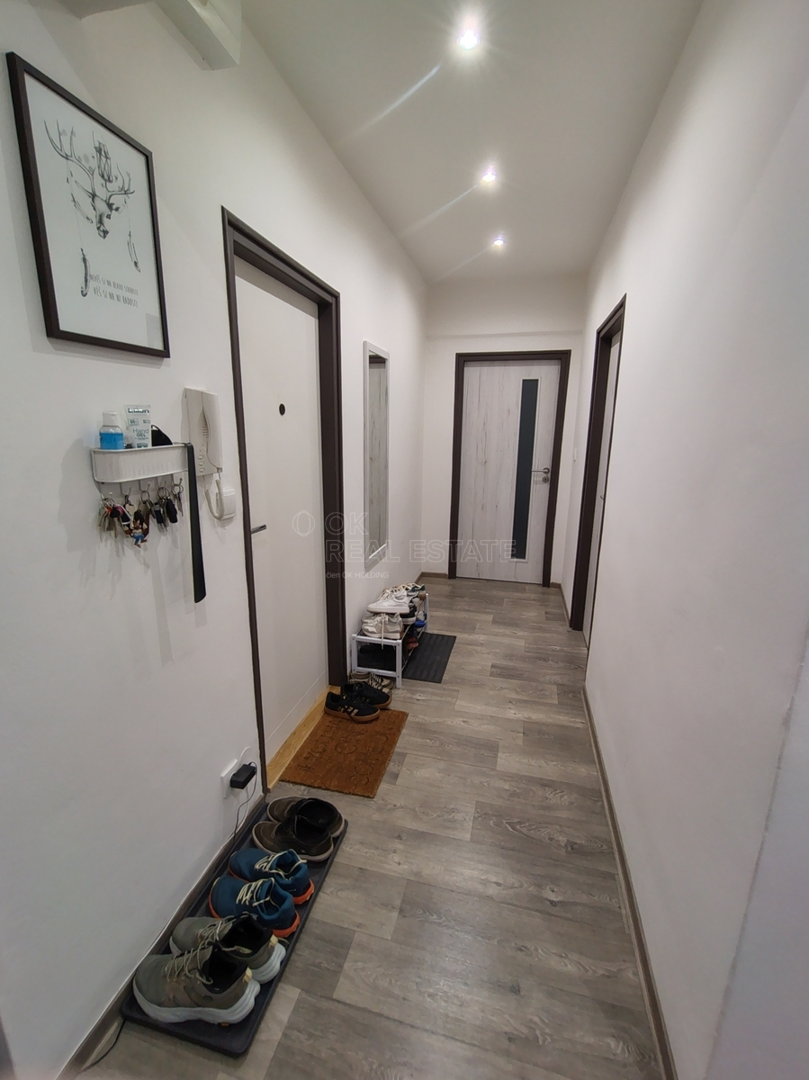 Byt bude předán nezařízený, vyklizený a nově vymalovaný. Obytný prostor nabízí chodbu, ze které je vstup do všech místností, jsou zde 2 neprůchozí pokoje, kuchyně, koupelna, WC a komora. Kuchyně je vybavena kuchyňskou linkou, plynovým sporákem s digestoří a elektrickou troubou. V koupelně se nachází sprchový kout, umyvadlo se zrcadlem, WC je samostatné. Topení i teplá voda je zajištěna centrálně dálkově, topná tělesa v podobě radiátorů s měřáky. V bytě je také dostupný internet a kabelová televize.