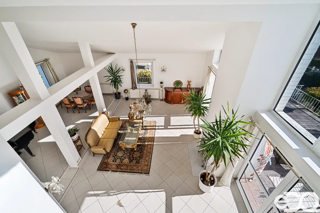 Dům je plně podsklepený a nabízí celkovou užitnou plochu cca 467 m². Kromě hlavního obytného prostoru disponuje také samostatnou jednotkou s vlastním vstupem a sociálním zázemím. Dominantou je centrální obytný prostor s otevřeným stropem a galerií, na kterou navazují dvě ložnice, každá s vlastní koupelnou.