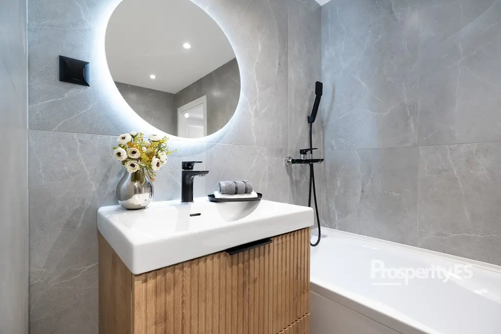 Součástí vybavení je kuchyňská linka s plynovým sporákem. Koupelna je vybavena WC, sprchovým koutem, vanou a umyvadlem. V bytě jsou plovoucí podlahy, vytápění je řešeno ústředním dálkovým vytápěním prostřednictvím radiátorů. Byt je napojen na dálkový vodovod, elektřina 230 V. Vybavení v ložnicích je pouze staging.