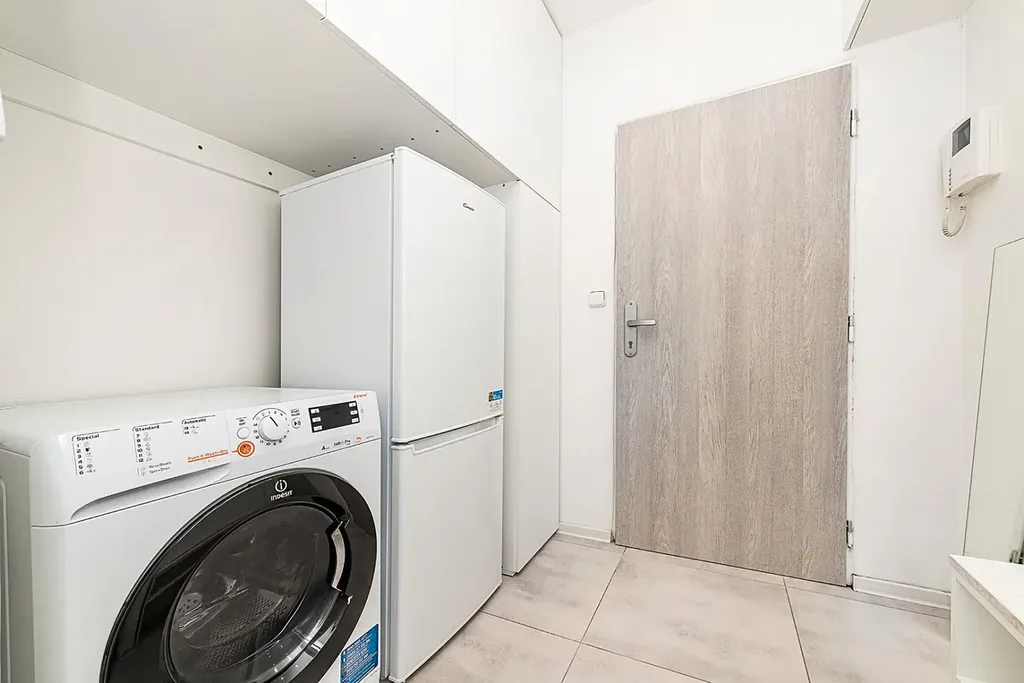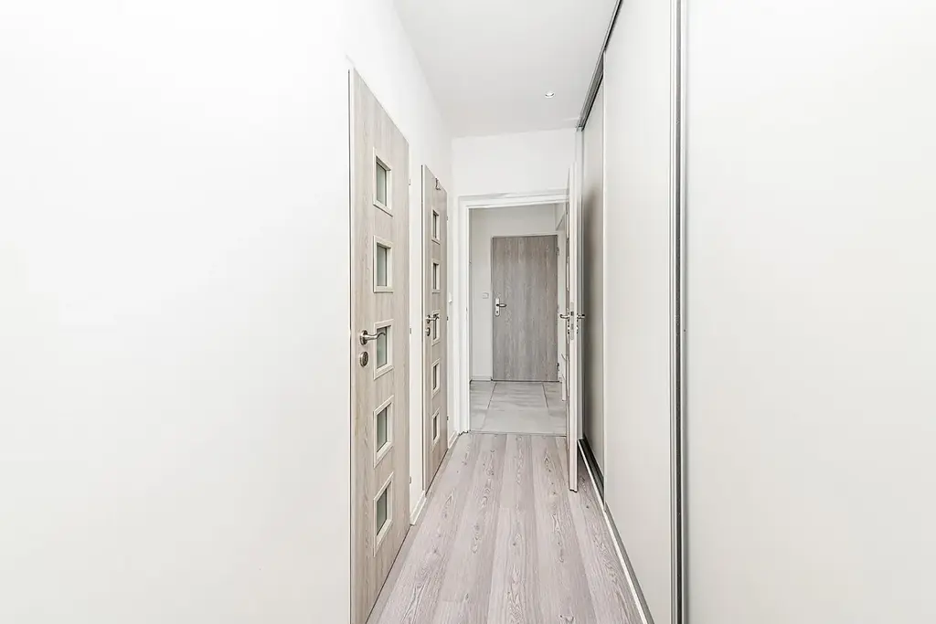 Je to 1+kk po kompletní rekonstrukci. V předsíni jsou vestavěné úložné prostory, lednice i pračka kombinovaná se sušičkou. V chodbě je samostatné wc a malá koupelna se sprchovým koutem. Naproti je další velká vestavěná skříň, takže o úložné prostory tu opravdu není nouze. A pokud budete chtít, sezónní věci si můžete uložit do sklepa v suterénu domu.