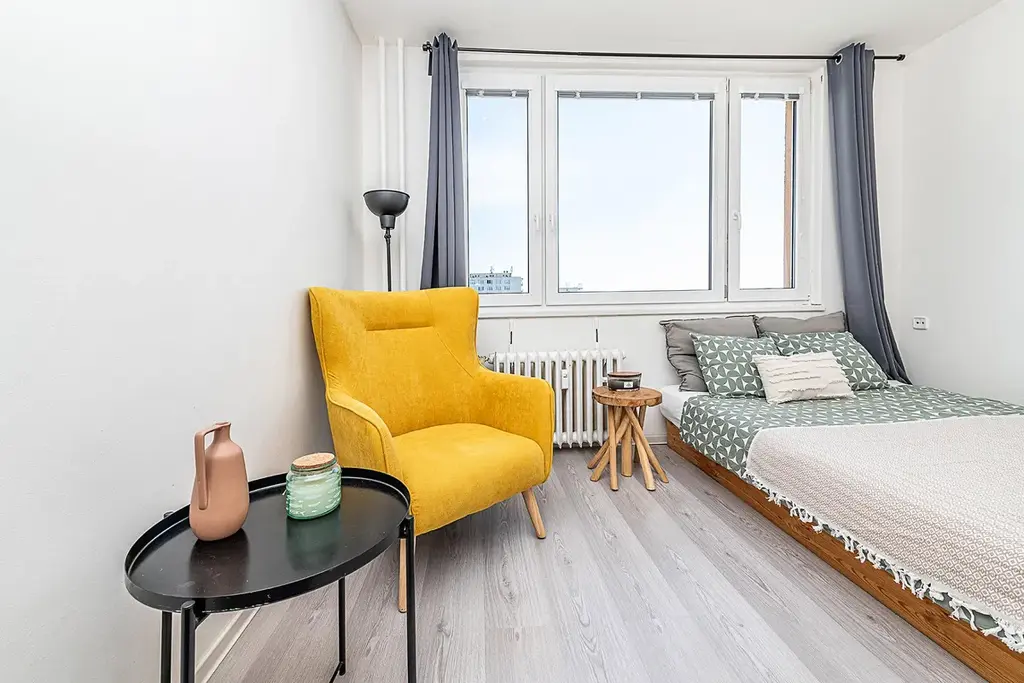 Mám tu pro vás právě takový byt na Zahradním Městě k podnájmu. Je v 10. patře skvěle udržovaného panelového domu s okny na východ.