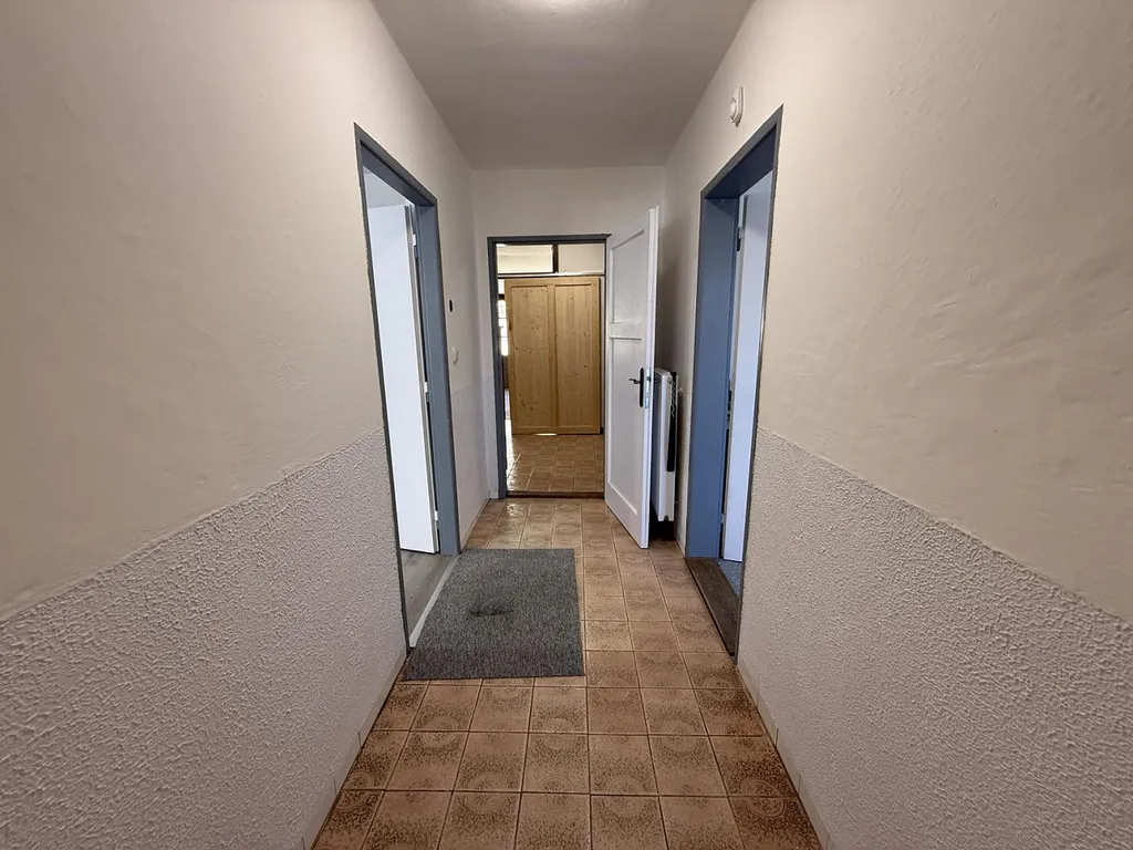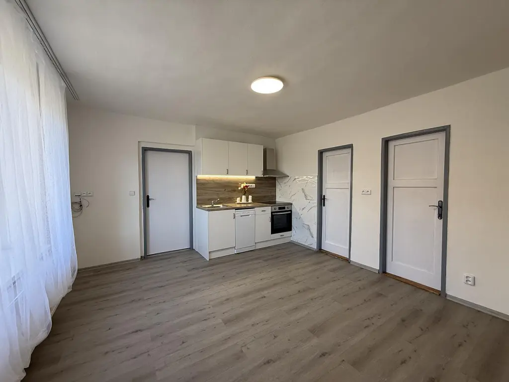 Při vstupu do domu se ocitneme v přízemí v prostorné předsíni o velikosti cca 5,14 m². Na levé straně se nachází dveře se vstupem do zrekonstruované kuchyně o celkové výměře cca 17,66 m². Nová kuchyňská linka je vybavena zcela novými spotřebiči, konkrétně sklo-keramickou deskou, myčkou, troubou, lednicí s mrazákem a digestoří. Z kuchyně je vstup do koupelny o celkové výměře cca 5,44 m², ve které je k dispozici vana, toaleta a nové umyvadlo s umyvadlovou skříňkou. Koupelna je vybavena i funkční pračkou. Z kuchyně je vstup do spíže s regály o velikosti cca 2,52 m² a do obývacího pokoje o celkové výměře cca 17,12 m². V přízemí se nachází samostatná místnost o celkové výměře cca 13,18 m², která může sloužit jako ložnice či pracovna. Z předsíně pokračujeme dále do chodby se schodištěm o výměře 16,94 m².