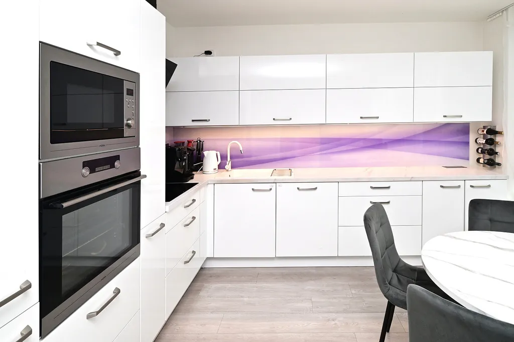 Jak kuchyňská linka, tak vestavěný nábytek na chodbě byl vyroben na zakázku, v obývacím pokoji pokoji je nainstalována klimatizace, která zajišťuje v letních dnes příjemné klima.