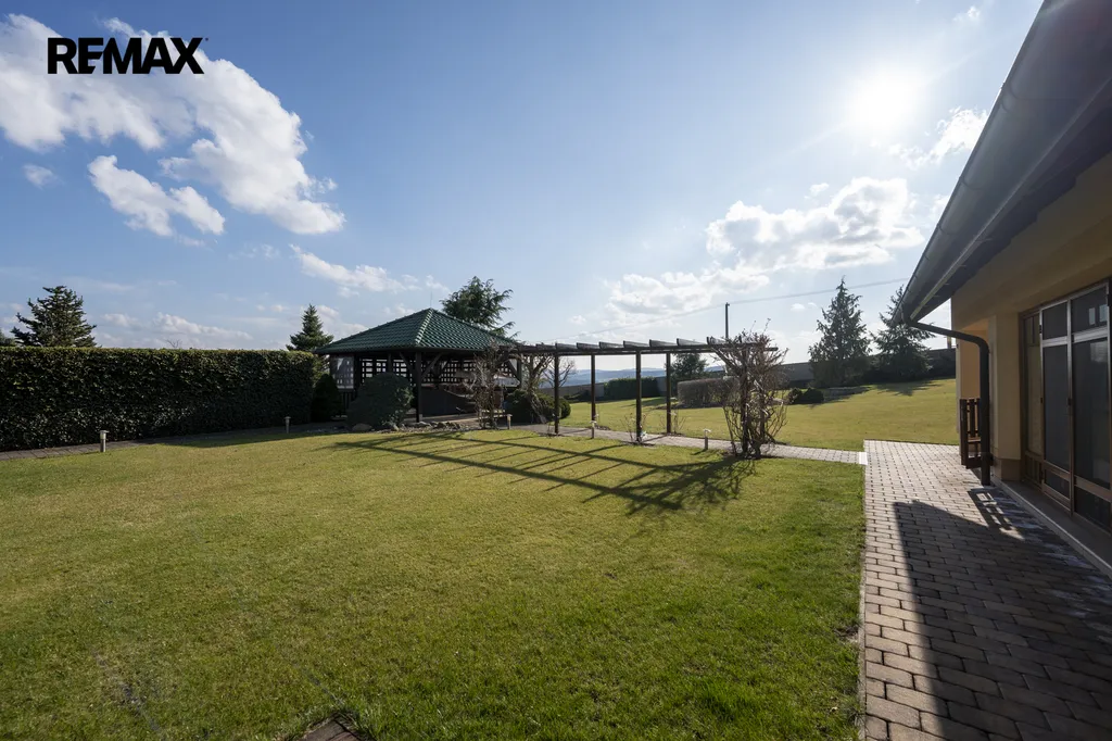 Pozemek o rozloze 2 660 m² poskytuje naprosté soukromí a je pečlivě komponován s důrazem na estetiku i funkčnost. Součástí je zahradní pergola, vzrostlá okrasná zeleň a dostatek prostoru pro relaxaci i reprezentativní využití.