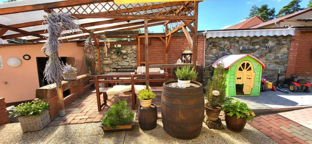 Naproti objektu je hřiště TJ Sokol a vedle vstupu na zahrádku je umístěn box Zásilkovny.